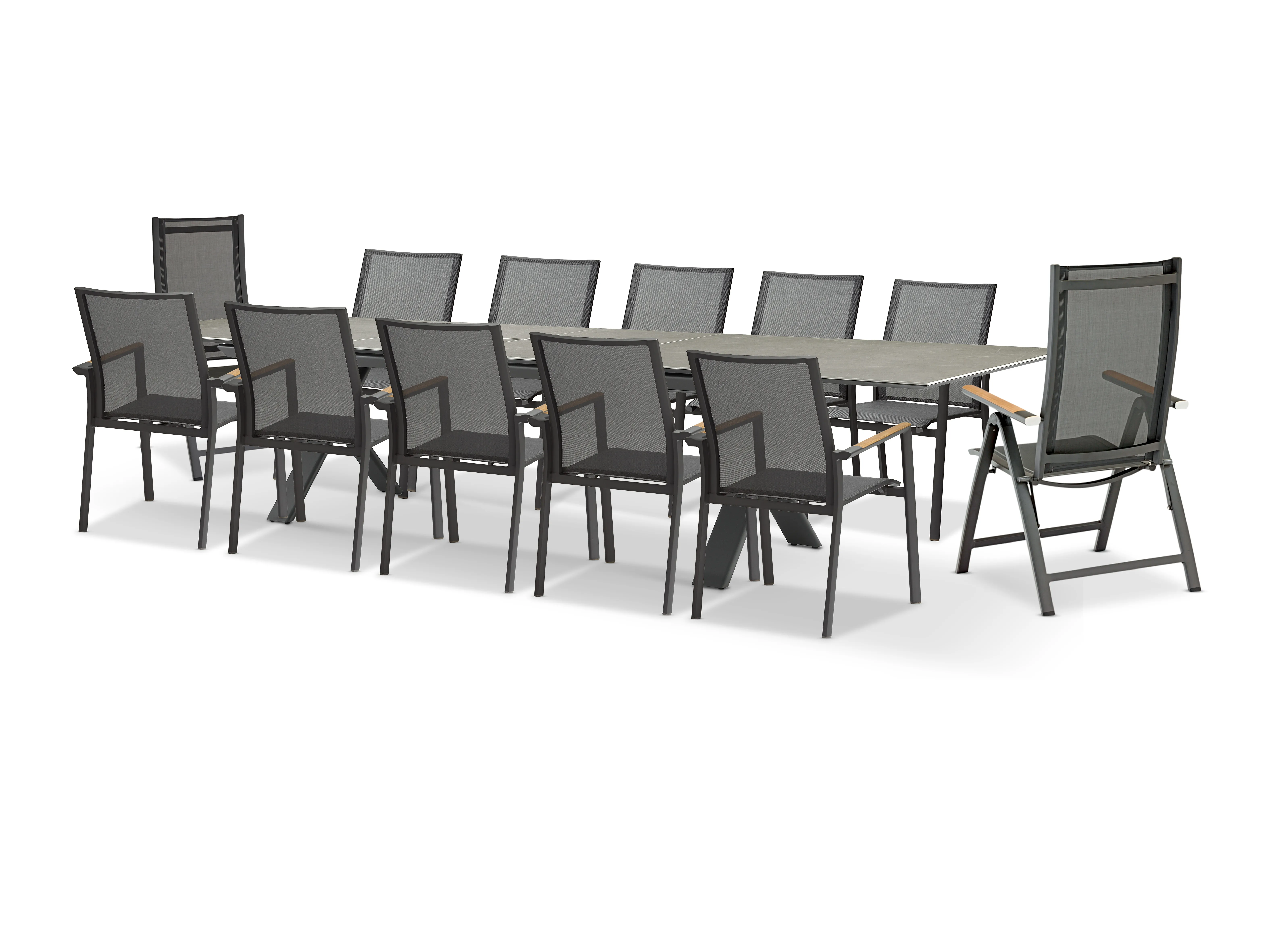 Комплект обеденной мебели антрацит, алюминий/спеченный камень/тик Тимро